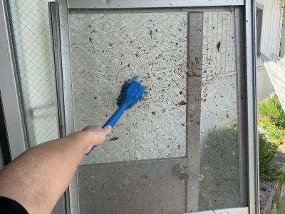 ガラスと一緒に網戸の清掃もし、夏なので虫がかなり付いていた網戸も綺麗になりお客様も喜んで頂けました。